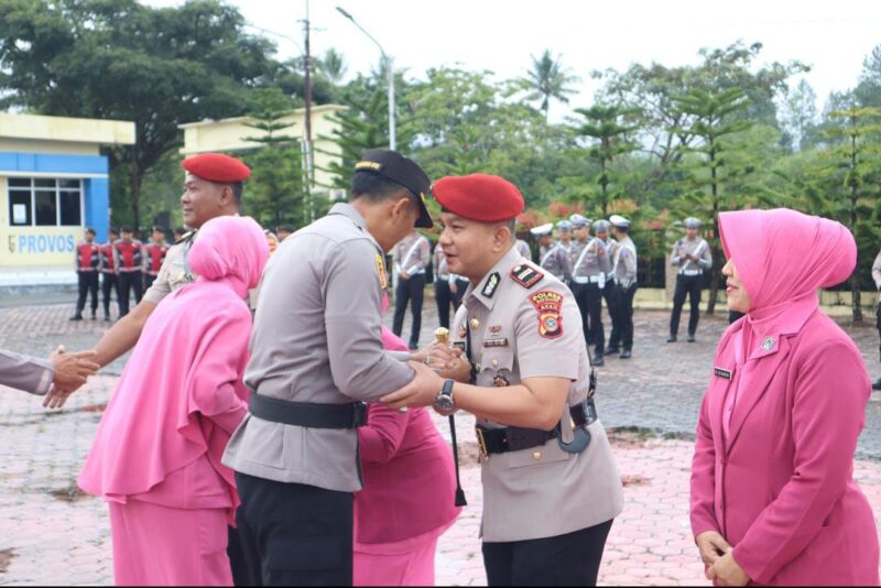 Blangkejeren – Kapolres Gayo Lues AKBP Setiyawan Eko Prasetiya, S.H., S.I.K., memimpin langsung upacara serah terima jabatan (Sertijab) Kasatresnarkoba Polres Gayo Lues. Kegiatan ini berlangsung di Lapangan Halaman Apel Polres Gayo Lues dengan dihadiri oleh seluruh pejabat utama, Ketua Bhayangkari Cabang Gayo Lues beserta Pengurus, para perwira serta personel Polres Gayo Lues.