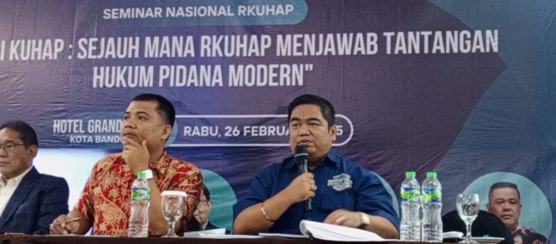 Bertajuk “Revisi KUHAP, Sejauh mana RKUHAP Menjawab Tantangan Hukum Pidana Modern”, seminar digelar Rabu 26 Februari 2025 pagi itu, berlangsung di ruang Tangkuban Perahu, Hotel Grand Asrilia Kota Bandung, sejak pukul 09.00, hingga 13.00 WIB.