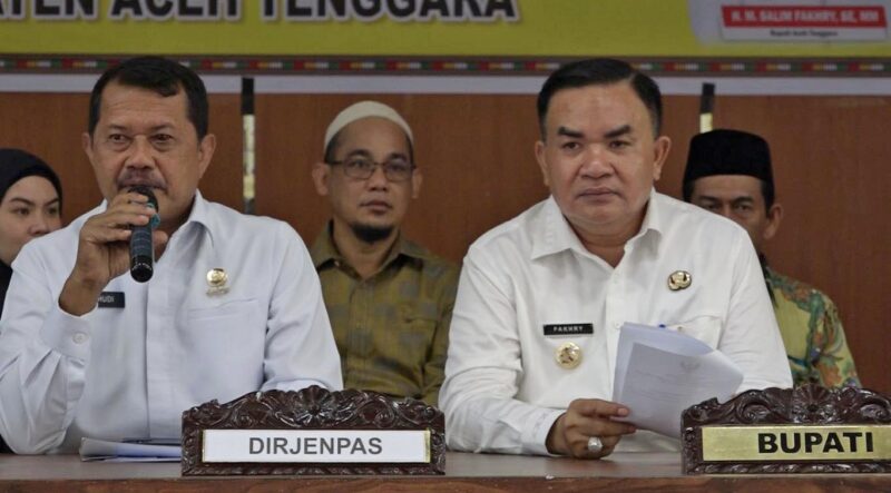 Kutacane | Disela-sela silahturahmi Bupati H. M. Salim Fakhry dan Wakil Bupati Heri Al Hilal dengan Kepala Desa dan Sekretaris Desa (sekdes) se-Aceh Tenggara Direktur Jendral Permasyarakatan (Dirjen PAS) Mashudi serta Anggota DPRI Komisi XIII Teuku Ibrahim himbau Kepala Desa dan Sekdes megenai 52 Narapida (Napi) yang kabur. Rabu (12/3/2024)