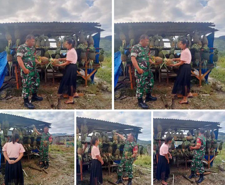 Pakpak Bharat,– Sebagai bentuk kepedulian terhadap kesejahteraan petani, Babinsa Koramil 07/Salak, Kodim 0206/Dairi, Serda S. Boangmanalu melaksanakan komunikasi sosial (komsos) dengan Ibu R. Berutu, seorang petani sekaligus penjual nanas madu di Jalan Sikadang Jandi, Desa Boangmanalu, Kecamatan Salak, Kabupaten Pakpak Bharat. Kegiatan ini bertujuan untuk menjalin silaturahmi serta memantau perkembangan usaha kecil yang dikelola masyarakat di wilayah binaannya. Minggu, (16/03-2025)