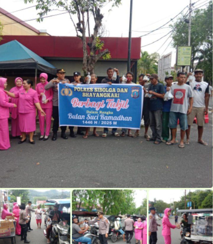 Polres Sibolga bersama Bhayangkari Cabang Sibolga melaksanakan kegiatan Bakti Sosial berupa pembagian Takjil kepada Warga di Jalan Raya dan Kepada Warga yang kurang mampu di Kota Sibolga, pada hari Sabtu, 15 Maret 2025. Kegiatan ini digelar dalam rangka menyambut dan merayakan Bulan Suci Ramadhan 1446 H / Tahun 2025 M.