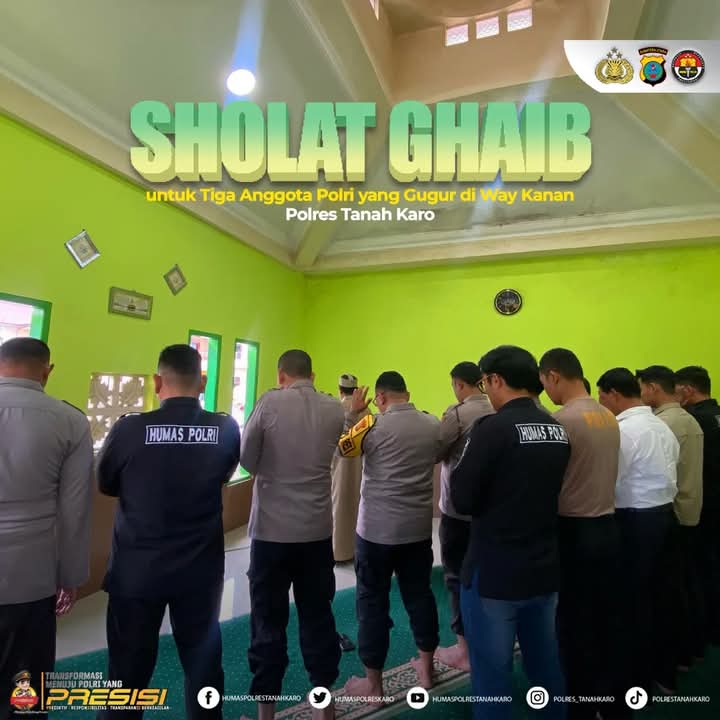 Pelaksanaan Shalat Ghaib berlangsung di Mushola Al Hafiz Polres Tanah Karo, usai pelaksanaan Shalat Zuhur berjamaah. Kapolres Tanah Karo menyampaikan rasa duka cita yang mendalam atas gugurnya ketiga personel tersebut dalam menjalankan tugas negara.