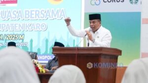 Berastagi – Dalam rangka menjalin tali silaturahmi di bulan suci Ramadhan 1446 H/2025 M, Pemerintah Kabupaten (Pemkab) Karo menggelar acara berbuka puasa bersama yang dilaksanakan di Aula Kantor Bupati Karo, Rabu (19/3/2025).Acara ini dihadiri langsung oleh Bupati Karo, Brigjen Pol (Purn) Dr. dr. Antonius Ginting, Sp.OG., M.Kes, bersama Wakil Bupati Karo, Komando Tarigan, S.P. Turut hadir pula Forkopimda Kabupaten Karo, Kepala Kantor Kementerian Agama Kabupaten Karo, pengurus MUI Kabupaten Karo, para ketua serta utusan ormas Islam di Kabupaten Karo, serta pengurus Forum Kerukunan Umat Beragama (FKUB) Kabupaten Karo.Dalam sambutannya, Bupati Karo menekankan bahwa momentum buka puasa bersama ini bukan sekadar rutinitas tahunan, tetapi juga sebagai sarana untuk meningkatkan kualitas keimanan dan mempererat persaudaraan di tengah masyarakat.