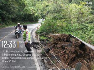 Kejadian longsor terjadi di bahu jalan dekat Jembatan Sibaganding, Nagori Sibaganding, Kecamatan Girsang Sipangan Bolon, Kabupaten Simalungun. Lokasi tersebut merupakan jalur vital yang menghubungkan Parapat-Siantar, terutama saat pelaksanaan Operasi Ketupat Toba 2025 dalam rangka Hari Raya Idul Fitri 1446 H.