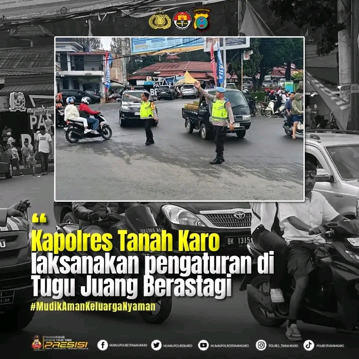 Berastagi – Dalam rangka menjaga kelancaran arus lalu lintas selama libur Lebaran, Kapolres Tanah Karo AKBP Eko Yulianto, S.H., S.I.K., M.M., M.Tr.Opsla turun langsung memimpin pengaturan lalu lintas di Pos Pam Terpadu Ops Ketupat, kawasan padat wisata Simpang Tugu Juang, Kota Berastagi, Kabupaten Karo, Sabtu (05/04/2024).