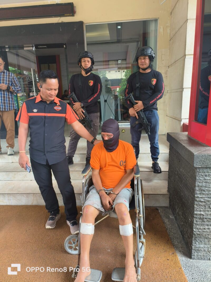 Sempat melarikan diri dari persembunyiannya namun akhirnya terhadap tersangka yang merupakan residivis dan merupakan DPO kasus pencabulan, dilakukan penembakan, yang akhirnya tak dapat melawan, dan diamankan, beserta batang bukti, 1 Pucuk Senjata Api jenis FN warna Silver, 2 butir peluru kaliber 9 mm, 1 bilah parang, 1 jaket, 1 celana warga hitam, dan 1 unit sepeda motor korban.