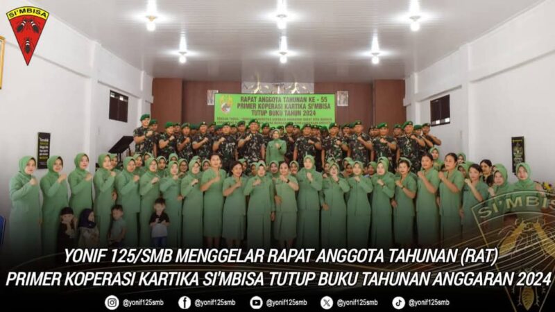 Melalui RAT ini, Batalyon Infanteri 125/SMB berharap dapat terus meningkatkan profesionalisme dalam pengelolaan koperasi demi mendukung kesejahteraan prajurit dan keluarga besar Yonif 125/SMB.