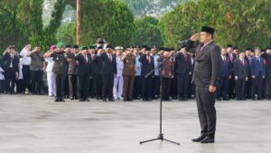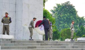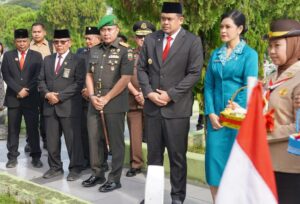 Seluruh peserta bersama-sama menaburkan bunga sebagai wujud penghargaan dan penghormatan atas pengabdian serta pengorbanan para pahlawan bangsa.