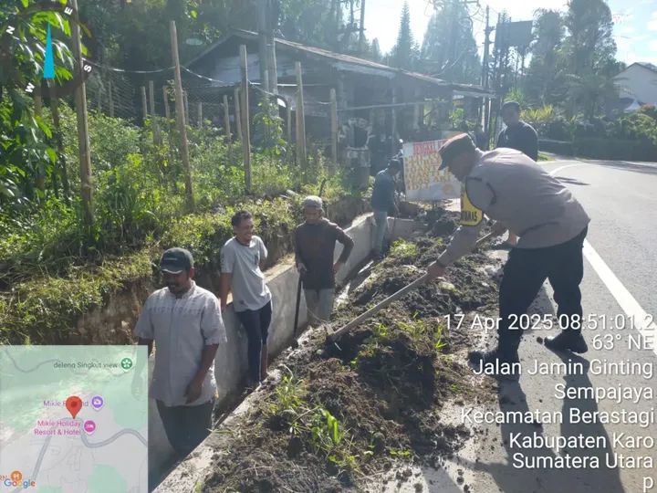 Berastagi – Dalam rangka meningkatkan kebersamaan dan kepedulian terhadap lingkungan, Bhabinkamtibmas Polsek Berastagi Aiptu Septa Purba bersama pemerintah desa dan masyarakat Desa Sempajaya melaksanakan kegiatan gotong royong kebersihan pada Kamis(17/4/2025) mulai pukul 09.00 WIB.