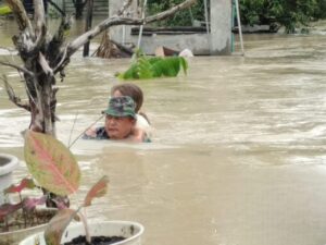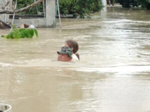 Banjir yang terjadi sejak dini hari menyebabkan beberapa rumah warga tergenang air setinggi 50 hingga 100 cm. Merespons cepat kondisi tersebut, Babinsa Koramil 13/AN Pelda Dwi Bambang sigap hadir di tengah masyarakat untuk membantu proses evakuasi, khususnya warga lanjut usia, anak-anak, dan ibu hamil ke tempat yang lebih aman.