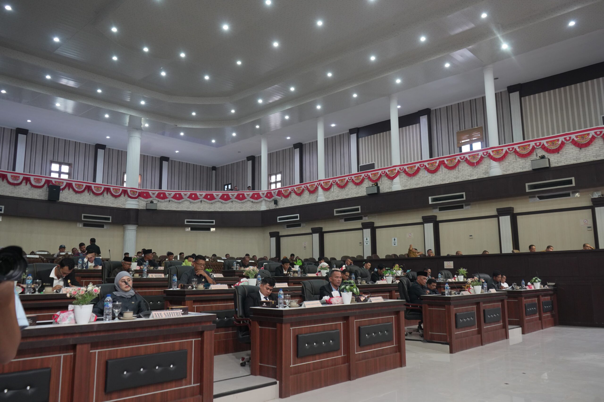 Danramil 11/KP Mayor Inf Hendra Gunawan mewakili Dandim 0209/ LB Hadiri kegiatan Rapat Paripurna penyampaian nota pengantar penjelasan Bupati Labuhanbatu Selatan tentang rencana awal Rancangan Pembangunan Jangka Menengah Daerah (RPJMD) Kabupaten Labuhanbatu Selatan Tahun 2025-2029 dan dilanjutkan Laporan Keterangan Pertanggung Jawaban (LKPJ) Bupati labuhanbatu Selatan tahun Anggaran 2024 di Ruang Rapat Paripurna DPRD Labuhanbatu Selatan Jalan Lintas Sumatera Sosopan Kecamatan Kotapinang Kabupaten Labuhanbatu Selatan pada Selasa, (22/04/2025).