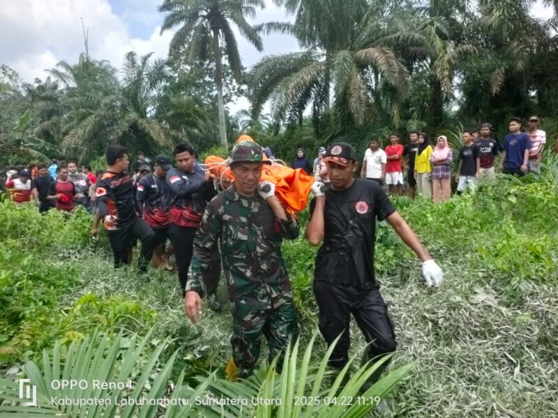 Komando Rayon Militer (Koramil) 13/AN Kodim 0209/Labuhanbatu, bersama tim gabungan dari Badan Penanggulangan Bencana Daerah (BPBD), Polsek setempat, serta masyarakat berhasil mengevakuasi sesosok mayat yang diduga korban hanyut di aliran Sungai Talihoran Desa Perbaungan Kecmatan Bilah Hulu,Kabupaten Labuhanbatu pada
