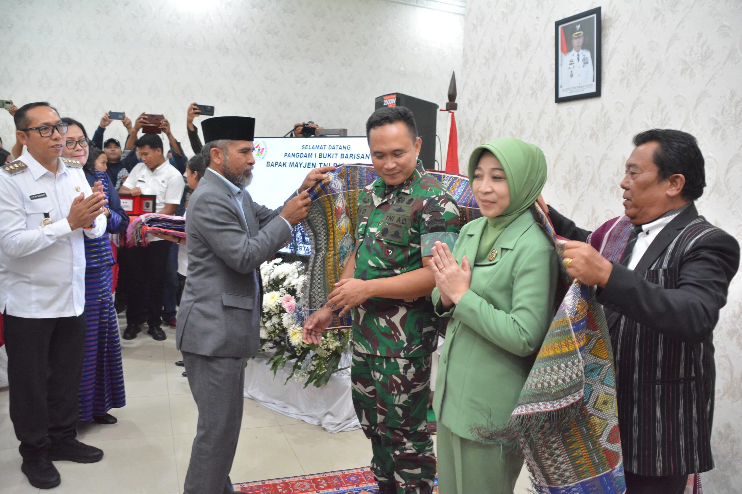 Kegiatan dilanjutkan dengan pemberian Ulos Batak kepada Pangdam I/BB beserta Ibu yang diberikan oleh toko adat dan Bupati Tapanuli Utara sebagai kehormatan acarah ditutup dengan pemberian cenderamata oleh bapak Pangdam kepada Bupati Taput.