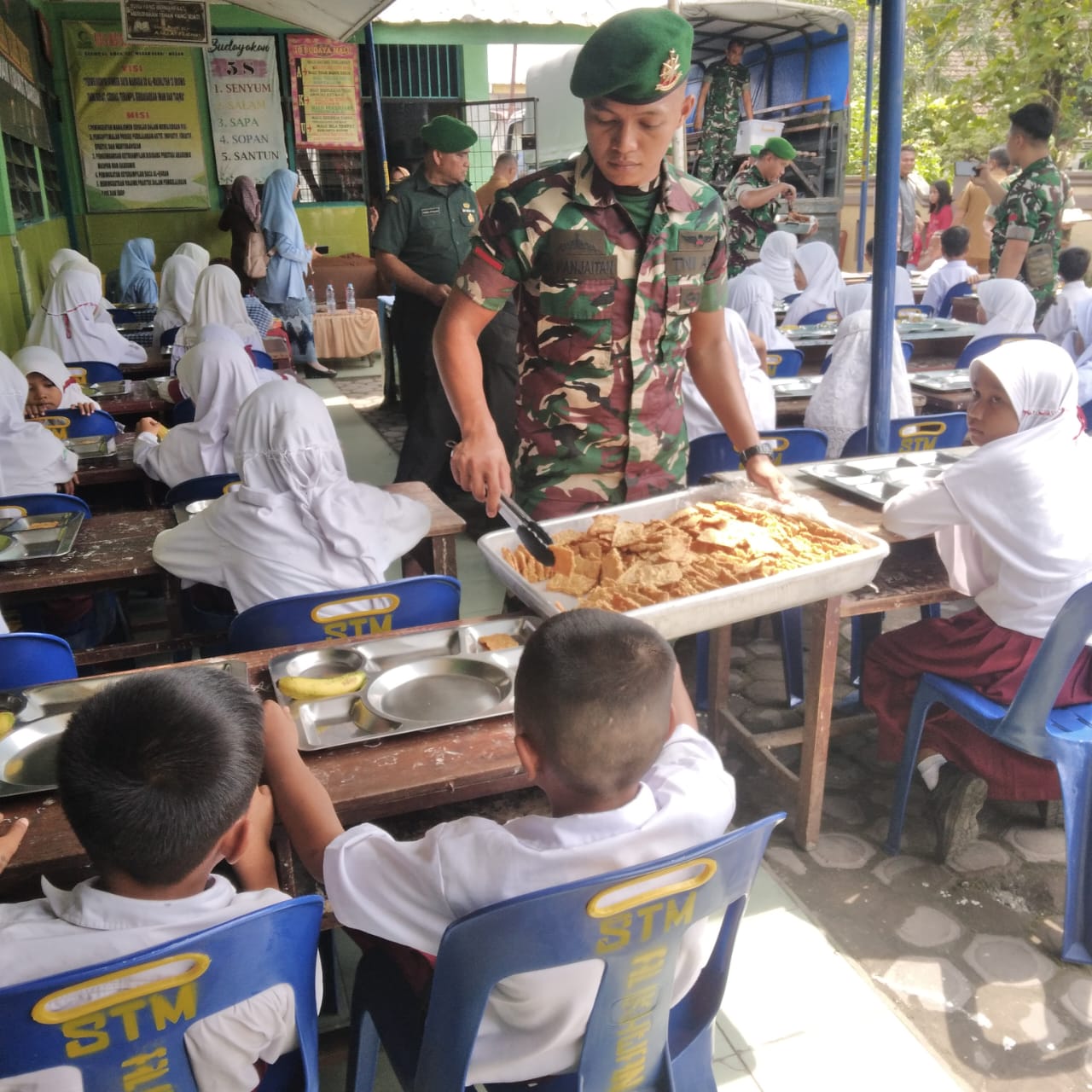 Kodam I/Bukit Barisan menunjukkan komitmennya dalam meningkatkan kesejahteraan masyarakat melalui kegiatan makan sehat bergizi di SD Al-Wasliyah 12 Jalan Bromo, Gang Kurnia, Kelurahan TSM III, Kecamatan Medan Denai, Senin (28/4/2025). Kegiatan ini bertujuan untuk meningkatkan kesadaran akan pentingnya gizi seimbang bagi anak-anak guna mendukung tumbuh kembang yang optimal.
