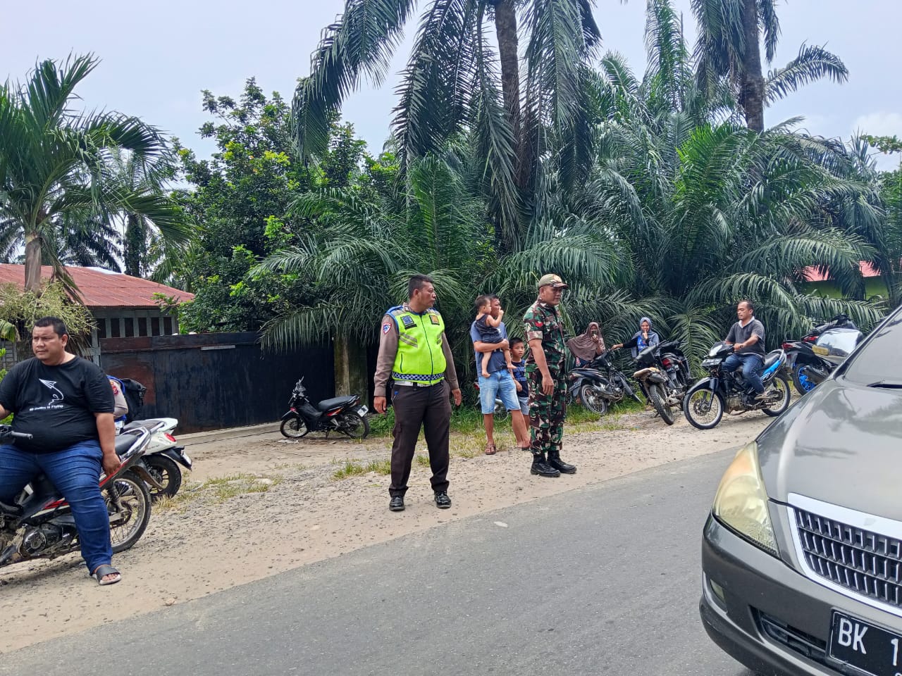 Koptu Salo Bintara Simatupang, Babinsa Koramil 12/LP Kodim 0209/Labuhanbatu, turut serta membantu proses evakuasi korban kecelakaan tunggal yang terjadi di Jalan Lintas Sumatera, tepatnya di Dusun Karang Sari, Desa Sabungan, Kecamatan Sungai Kanan Kabupaten Labusel, pada Senin pagi (05/05/2025).