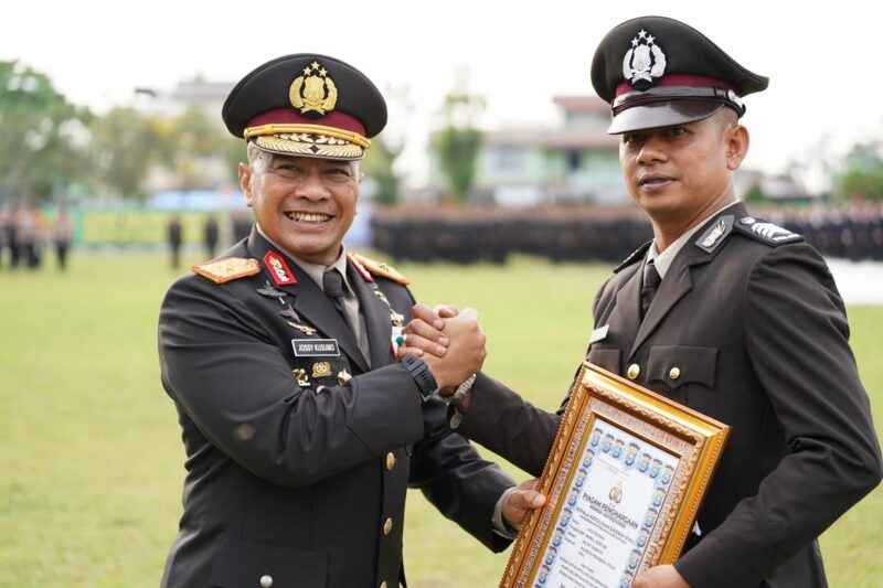 Momen upacara ini juga diwarnai dengan pemberian penghargaan kepada personel berprestasi, yaitu Bripka Agus Budiadi, anggota Ba Sat Samapta Polresta Pekanbaru.