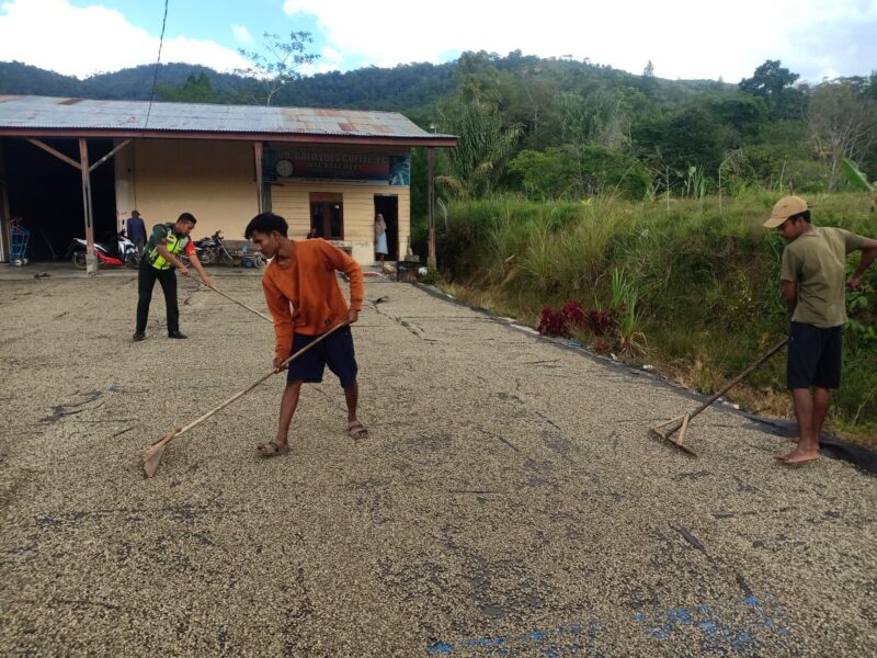 “Kami hadir bukan hanya sebagai aparat kewilayahan, tapi juga sebagai mitra yang ikut merasakan perjuangan masyarakat dalam membangun ekonomi, salah satunya melalui budidaya kopi ini,” ujar Praka Riky Sanjaya saat ditemui di lokasi penjemuran.