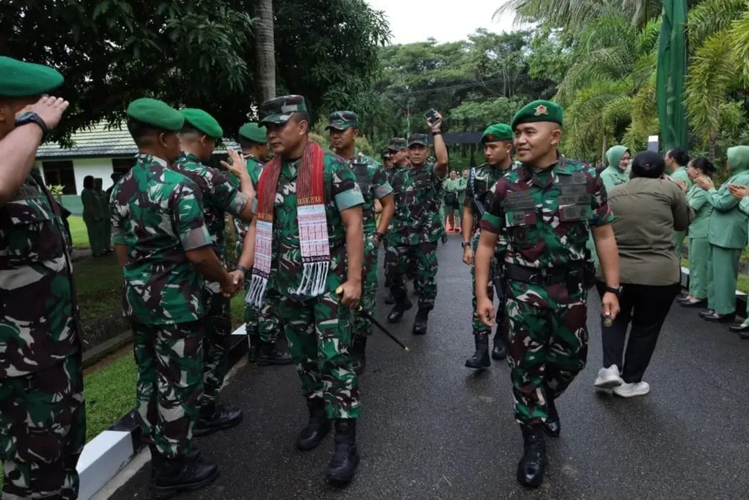 Pangdam I/BB Mayjen TNI Rio Firdianto melaksanakan kunjungan kerja ke Brigade Infanteri 7/Rimba Raya (Brigif 7/RR) di Galang Kab.Deli Serdang, Senin (16/6/2025), untuk mengecek kesiapan operasional satuan serta memberikan motivasi kepada prajurit sekaligus meninjau sejumlah kegiatan pembinaan dalam rangka memperingati HUT ke-75 Kodam I/Bukit Barisan.
