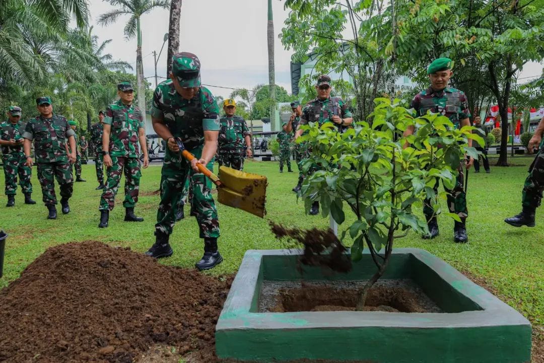 Usai sesi foto bersama, Pangdam melaksanakan penanaman pohon di lingkungan markas. Kegiatan ini menjadi simbol kepedulian TNI terhadap kelestarian alam dan komitmen dalam menjaga lingkungan hidup.
