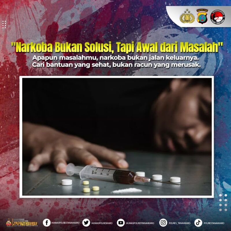 Kapolres Tanah Karo AKBP Eko Yulianto, S.H., S.I.K., M.M., M.Tr.Opsla melalui Kasat Narkoba AKP Harjuna Bangun, S.Sos., M.H., mengatakan bahwa narkoba hanya akan memperparah keadaan, bukan menyelesaikan masalah yang sedang dihadapi seseorang.