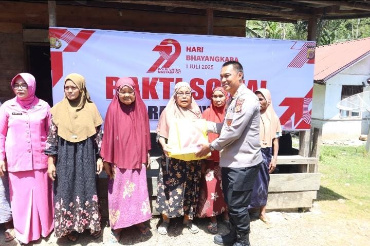 Blangkejeren – Kepolisian Resor (Polres) Gayo Lues terus menunjukkan komitmennya sebagai pelindung, pengayom, dan pelayan masyarakat bukan hanya melalui tugas-tugas penegakan hukum, tetapi juga dalam bentuk aksi nyata di tengah masyarakat. Dalam rangka memperingati Hari Bhayangkara ke-79 Tahun 2025, Polres Gayo Lues menggelar kegiatan bakti sosial dengan menyalurkan bantuan sembako kepada masyarakat kurang mampu di Desa Uyem Beriring, Kecamatan Tripe Jaya, Kabupaten Gayo Lues.