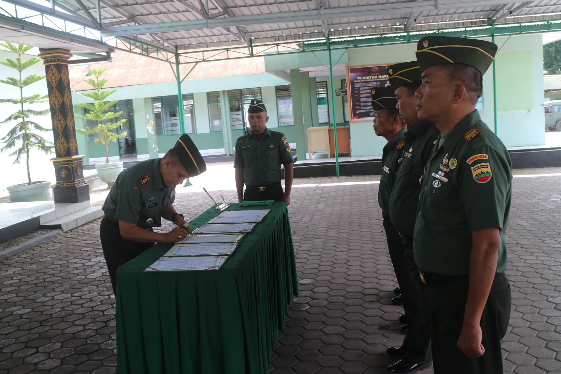 Sidikalang, — Dalam suasana penuh khidmat dan semangat pengabdian, Kodim 0206/Dairi menggelar upacara penyerahan dan serah terima jabatan Danramil jajaran Kodim 0206/Dairi di Aula Terbuka Makodim, Jalan Gereja, Sidikalang, Kabupaten Dairi, Senin (23/6/2025). Kegiatan ini dipimpin langsung oleh Komandan Kodim 0206/Dairi, Letkol Inf Goklas Pirtahan Silaban, sebagai bagian dari upaya pembinaan dan penyegaran organisasi di jajaran komando kewilayahan.