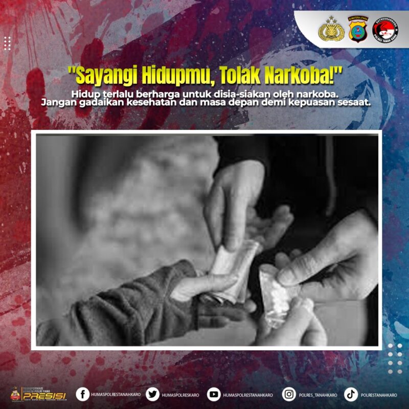 Penyalahgunaan narkoba masih menjadi ancaman nyata bagi generasi bangsa. Dalam upaya menekan peredaran dan penggunaan narkotika, Polres Tanah Karo terus menggelorakan kampanye penyadaran kepada masyarakat dengan pesan kuat: “Sayangi dirimu, tolak narkoba. Hidup terlalu berharga untuk disia-siakan.”