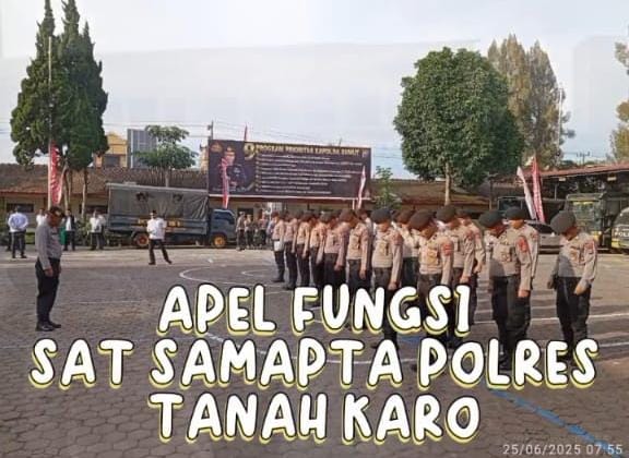 Kabanjahe – Dalam rangka meningkatkan kedisiplinan serta evaluasi terhadap kinerja personel, Satuan Samapta Polres Tanah Karo melaksanakan kegiatan Apel Fungsi, Analisa dan Evaluasi (Anev) Kinerja, serta Sarapan Pagi bersama, pada Rabu (25/06/2025) pagi.