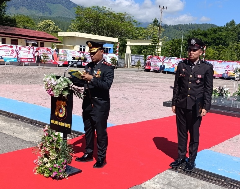 Kapolres Gayo Lues, AKBP Hyrowo, S.I.K., dalam amanatnya menyampaikan apresiasi dan penghargaan setinggi-tingginya kepada seluruh anggota Polri, khususnya personel Polres Gayo Lues, atas dedikasi, loyalitas, dan pengabdian luar biasa yang telah diberikan selama ini. Ia menyebut bahwa selama 79 tahun berdiri, Polri telah menunjukkan eksistensinya sebagai pemelihara keamanan dan ketertiban masyarakat, sebagai alat negara dalam menegakkan hukum, serta sebagai pelindung, pengayom, dan pelayan masyarakat. Menurutnya, berbagai dinamika, tantangan, dan hambatan yang dihadapi tidak melemahkan semangat pengabdian jajaran kepolisian, justru menjadi dorongan untuk memperkuat nilai-nilai perjuangan Bhayangkara sejati dalam bingkai negara hukum yang demokratis.