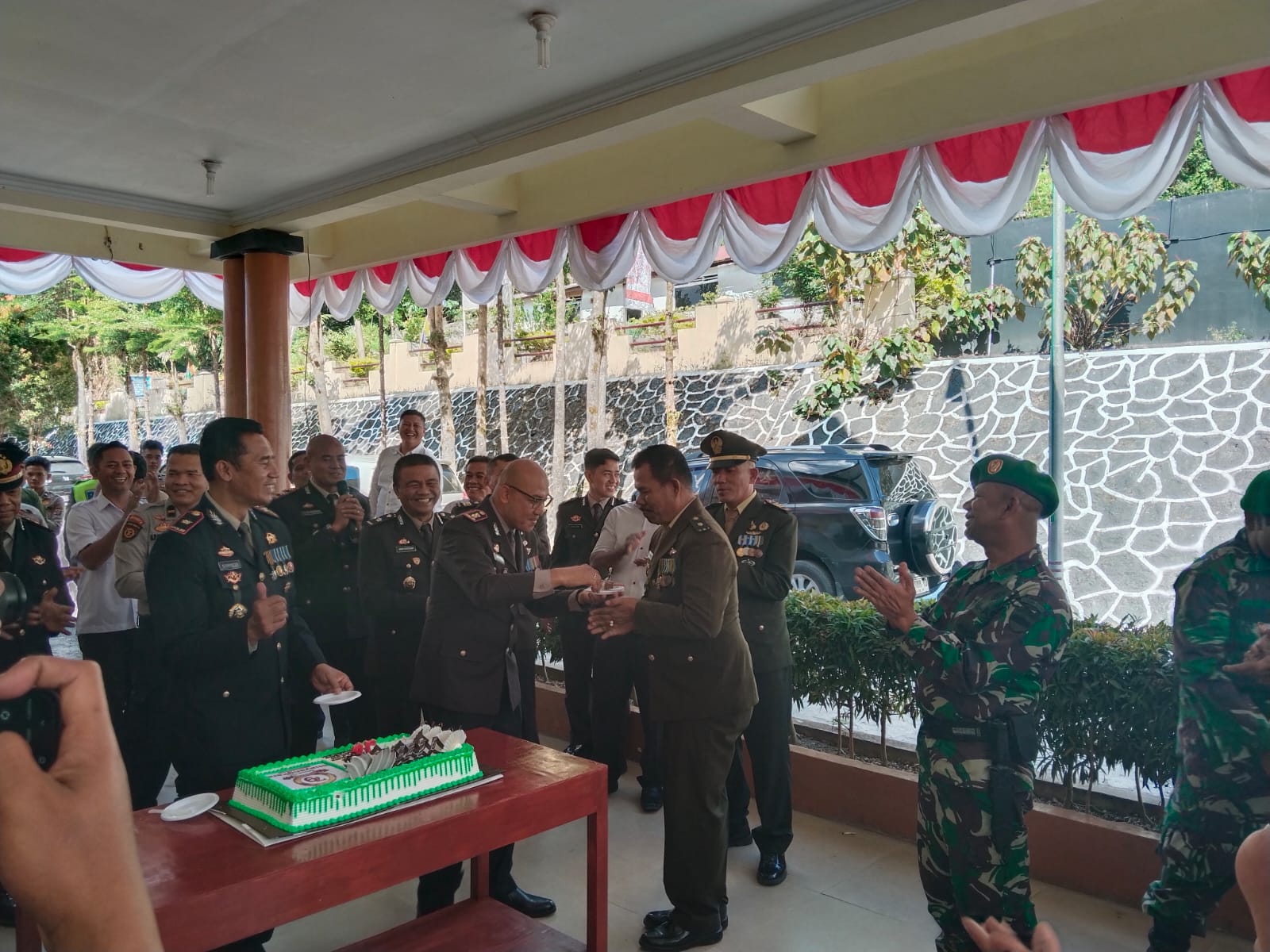 “Selamat ulang tahun ke-79 untuk Polri, khususnya Polres Pakpak Bharat. Kami yakin Polri akan semakin profesional, sukses, dan semakin dicintai masyarakat,” ujar Mayor Cba M. Manurung mewakili Dandim 0206/Dairi. Suasana penuh kekeluargaan dan tawa mengiringi penyerahan kue ulang tahun, disambut hangat oleh jajaran Polres.