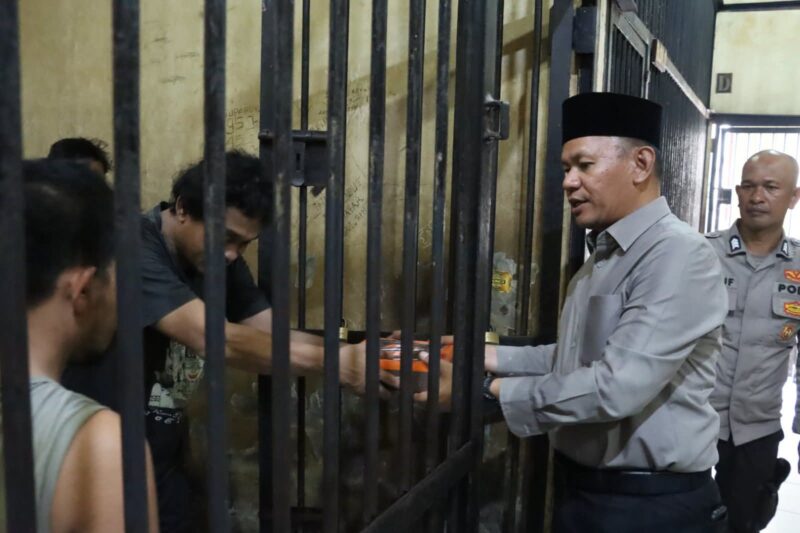 Selain memberikan makanan, Kapolres juga memberikan nasihat kepada para tahanan agar menjadikan masa penahanan sebagai waktu untuk merenung, memperbaiki diri, dan berkomitmen untuk tidak mengulangi kesalahan di masa depan.