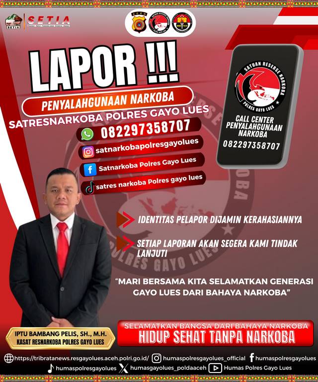 Blangkejeren  — Dalam upaya serius memberantas peredaran narkoba di wilayah Kabupaten Gayo Lues, Kepolisian Resor (Polres) Gayo Lues membuka layanan Call Center pengaduan narkoba yang dapat diakses secara langsung oleh seluruh masyarakat. Inisiatif ini menjadi bagian dari komitmen Polri dalam memerangi ancaman narkotika melalui pelibatan aktif warga.