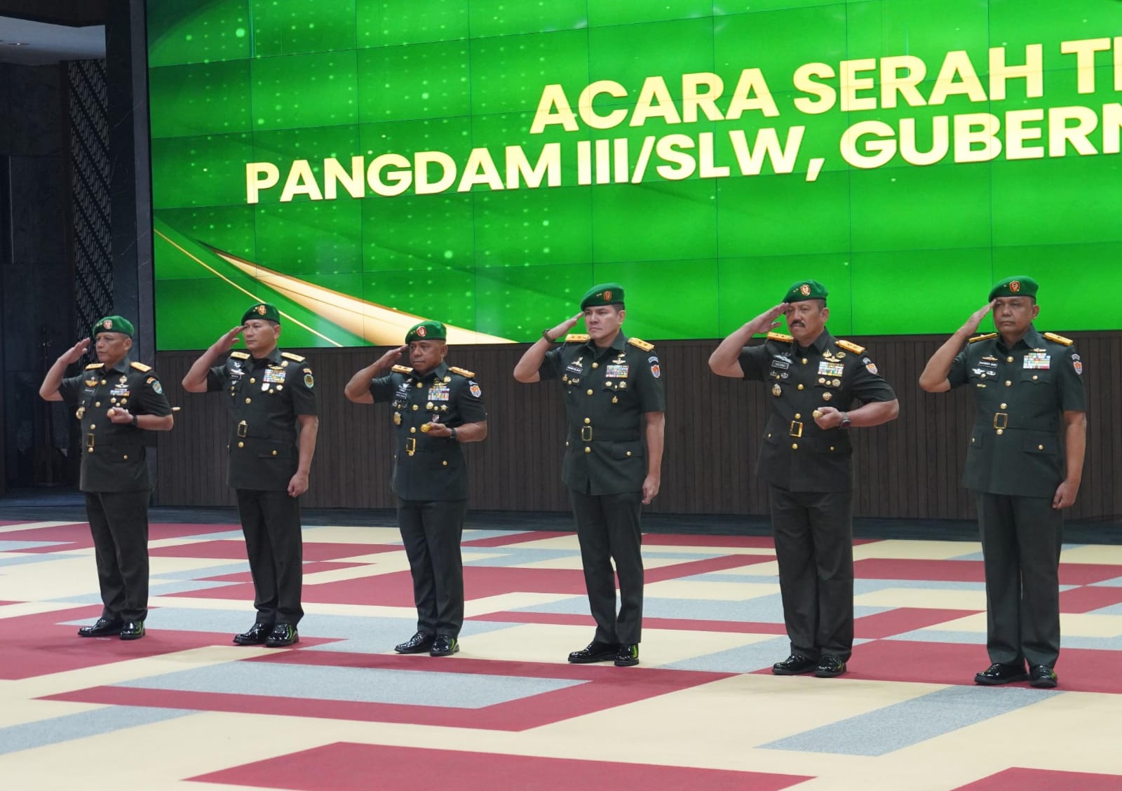 Kepala Staf Angkatan Darat (Kasad) Jenderal TNI Maruli Simanjuntak, M.Sc., memimpin upacara Serah Terima Jabatan (Sertijab) Pangdam III/Siliwangi, Gubernur Akademi Militer (Akmil), dan Komandan Sekolah Calon Perwira Angkatan Darat (Dansecapa AD) di Markas Besar Angkatan Darat, Rabu (13/8/2025).