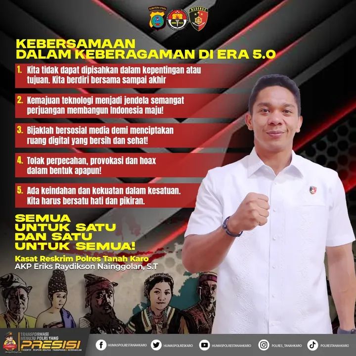 Tanah Karo – Dalam menghadapi perkembangan teknologi di era 5.0, Kasat Reskrim Polres Tanah Karo, AKP Eriks Raydikson S.T., mengajak seluruh lapisan masyarakat untuk menjaga persatuan dan kebersamaan di tengah keberagaman.