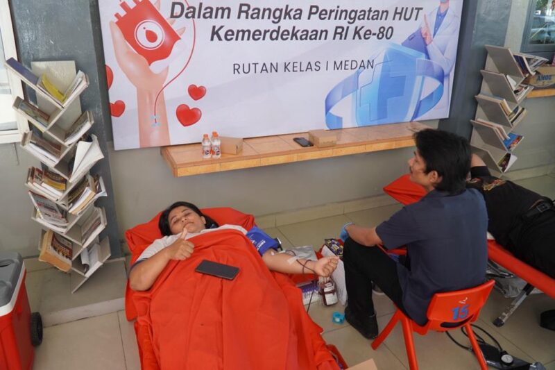 Bertempat di halaman depan Rutan, Usai senam, rangkaian kegiatan berlanjut dengan pelaksanaan donor darah bekerja sama dengan Palang Merah Indonesia (PMI) Kota Medan. Para pegawai dan pengunjung tampak antusias mendonorkan darahnya sebagai wujud nyata kepedulian terhadap sesama yang membutuhkan. Kegiatan ini sekaligus menegaskan bahwa semangat kemerdekaan bukan hanya dirayakan dengan upacara seremonial, melainkan juga dengan aksi nyata yang memberi manfaat luas bagi masyarakat.