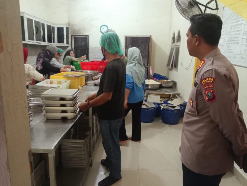 Kapolsek Indrapura melakukan pengecekan langsung ke Dapur Umum SPPG untuk memastikan proses produksi dan pendistribusian makan bergizi gratis berjalan dengan baik. Pengecekan juga dilakukan pada proses pengemasan makanan yang telah dimasak dan akan didistribusikan ke sekolah-sekolah.