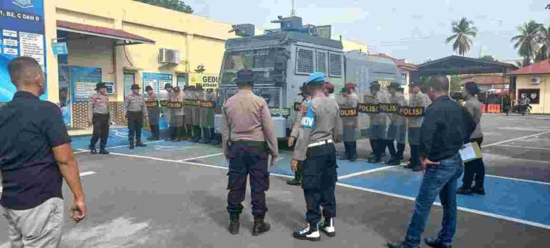 BATU BARA – Personel Polres Batu Bara melaksanakan kegiatan apel dan latihan Pengendalian Massa (Dalmas) di Halaman Mako Polres Batu Bara, Kecamatan Lima Puluh, Kabupaten Batu Bara, pada Sabtu, 20 September 2025.