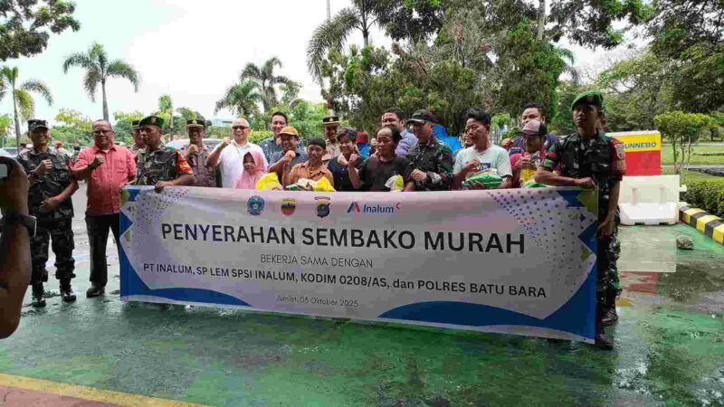 Sei Suka – Wujud kepedulian terhadap masyarakat kurang mampu, Polres Batu Bara bersama dengan PT. Inalum dan TNI bersinergi menggelar pasar murah yang menyediakan 1200 paket sembako dengan harga terjangkau. Kegiatan pelepasan sembako pasar murah ini dilaksanakan di Kantor SSC PT. Inalum Desa Kuala Tanjung, Kecamatan Sei Suka, Kabupaten Batu Bara pada hari Jumat, 03 Oktober 2025, pukul 08.30 WIB.