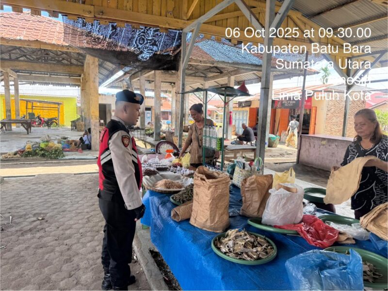 Batu Bara, 6 Oktober 2025 – Satuan Samapta (Sat Samapta) Polres Batu Bara kembali melaksanakan kegiatan “Cooling System” dengan tujuan menciptakan rasa aman dan memberikan imbauan Kamtibmas kepada masyarakat, khususnya di Pasar Lima Puluh, Senin (6/10/2025).