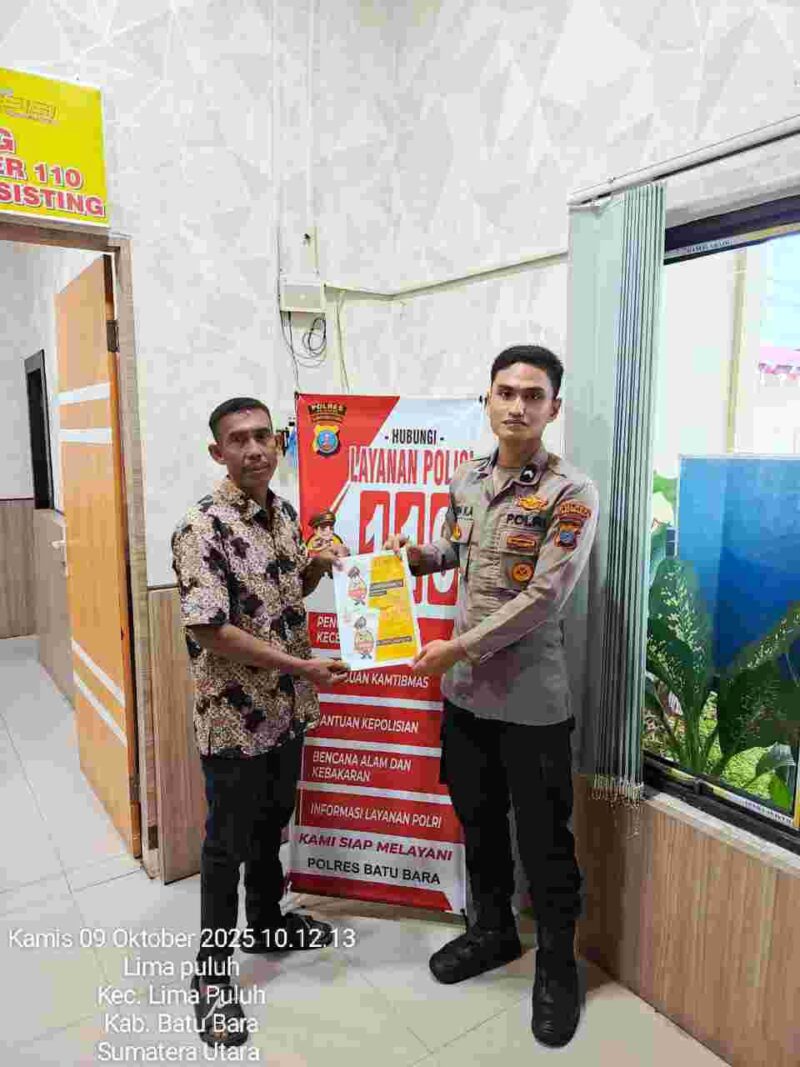 Batu Bara, 9 Oktober 2025 – Polres Batu Bara terus meningkatkan pelayanan kepada masyarakat melalui Call Center 110. Pada hari Kamis, 9 Oktober 2025, pelayanan Call Center 110 aktif melakukan sosialisasi dan menerima laporan dari masyarakat mulai pukul 08.00 WIB hingga selesai.