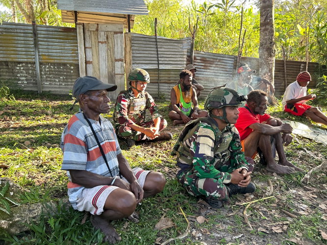 Yalimo, –Personel Satgas Yonif 521/DY turut menghadiri acara doa bersama yang digelar masyarakat Distrik Apalapsili dalam rangka perbaikan pembangunan bandara di wilayah Distrik Apalapsili, Kabupaten Yalimo. (20/10/2025(.
