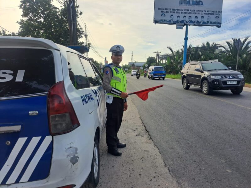 Sat Lantas Polres Batu Bara Tingkatkan Keamanan dan Ketertiban Lalu Lintas dengan Patroli “Kibas Bendera”