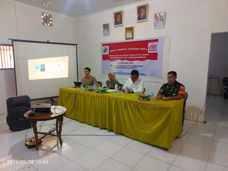 Kegiatan RAT ini menjadi agenda penting dalam evaluasi dan penataan organisasi koperasi desa, sekaligus sebagai forum pertanggungjawaban pengurus kepada para anggota. Dalam kegiatan tersebut, turut hadir Kepala Desa Bontomanai Muh. Aris, S.Sos, Ketua Koperasi Kamaluddin, Pendamping Koperasi Takalar, para Pengurus Koperasi.