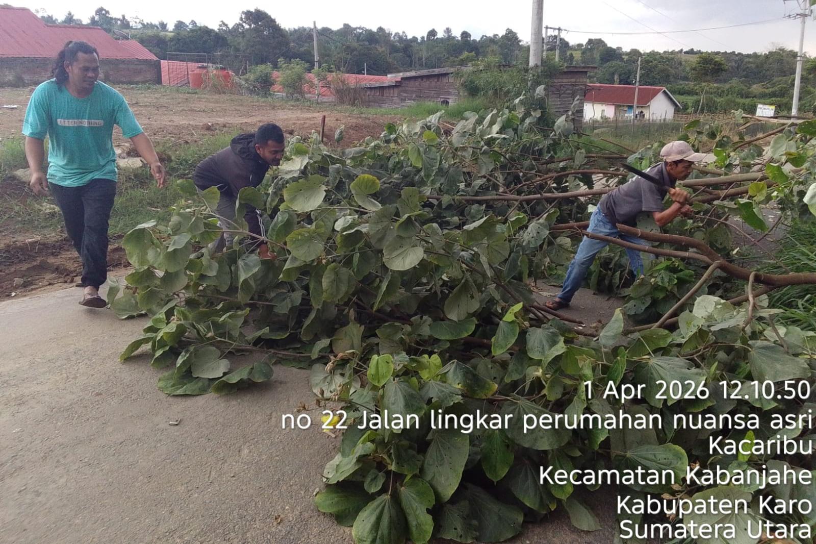 Tribun1.com – KARO – DESA KACARIBU – STM SIMALEM, bersama warga bergerak cepat membersihkan pohon tumbang yang menutup akses jalan di Desa Kacaribu, Kecamatan Kabanjahe, Kabupaten Karo, Rabu (1/4/2026) sekitar pukul 12.15 WIB.