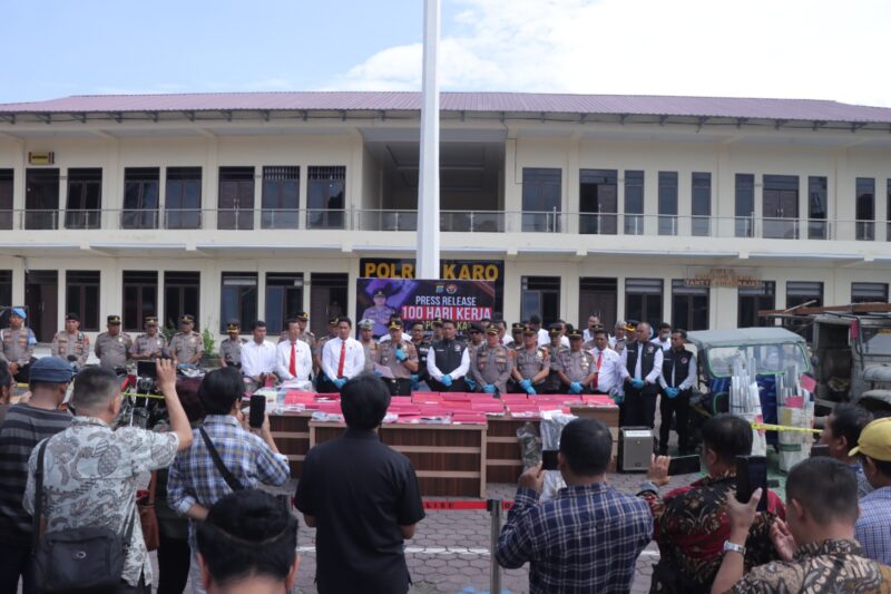 Pengungkapan narkotika Polres Karo juga menunjukkan hasil signifikan. Sebanyak 46 kasus berhasil diungkap dengan total 61 tersangka diamankan selama periode 100 hari pertama 2026.