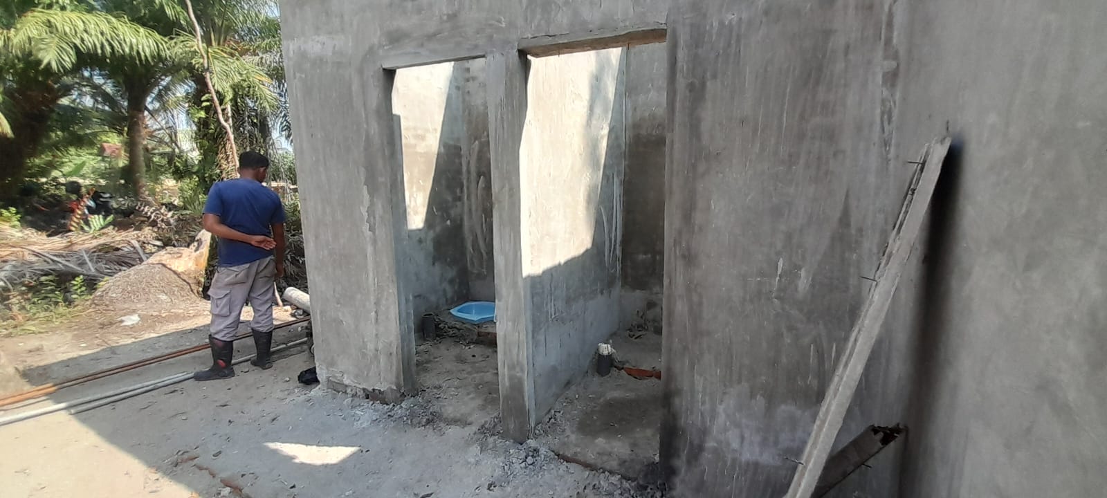 Pada titik pertama, pembangunan sumur bor dan dua unit MCK telah mencapai 45 persen. Personel melanjutkan pemlasteran dinding MCK, pemasangan kloset, serta pengerjaan pengeboran sumur bor air bersih.