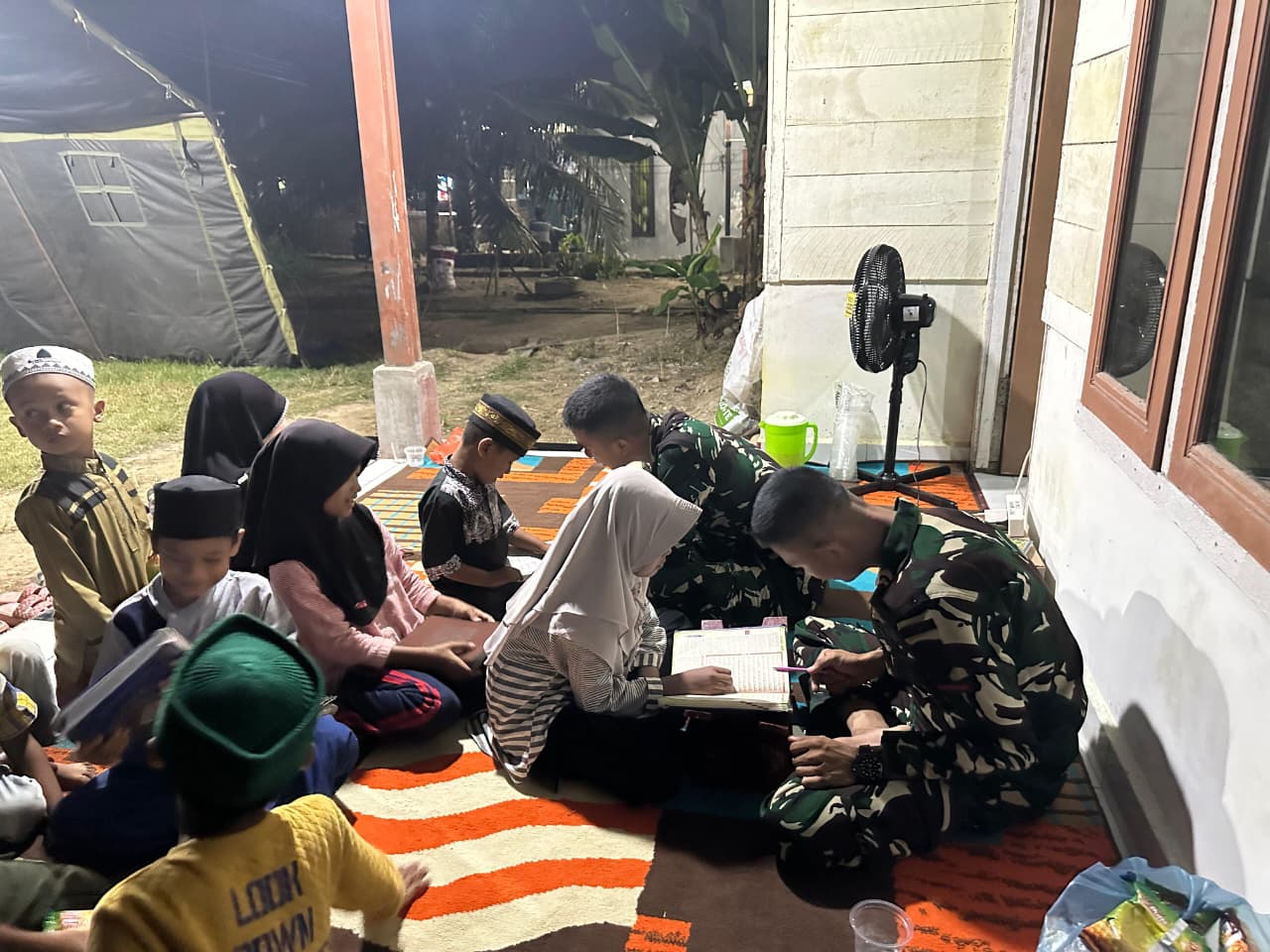 TMMD 128 Langkat Bangun SDM, Prajurit TNI Ajari Anak Desa Pasar Rawa Mengaji Malam Hari