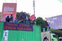 Makassar – tribun1.com | Aksi tersebut menyikapi kebijakan pemerintah yang dinilai tidak berpihak pada rakyat. Massa aksi membawa spanduk tuntutan bertuliskan “Makassar Bergerak…